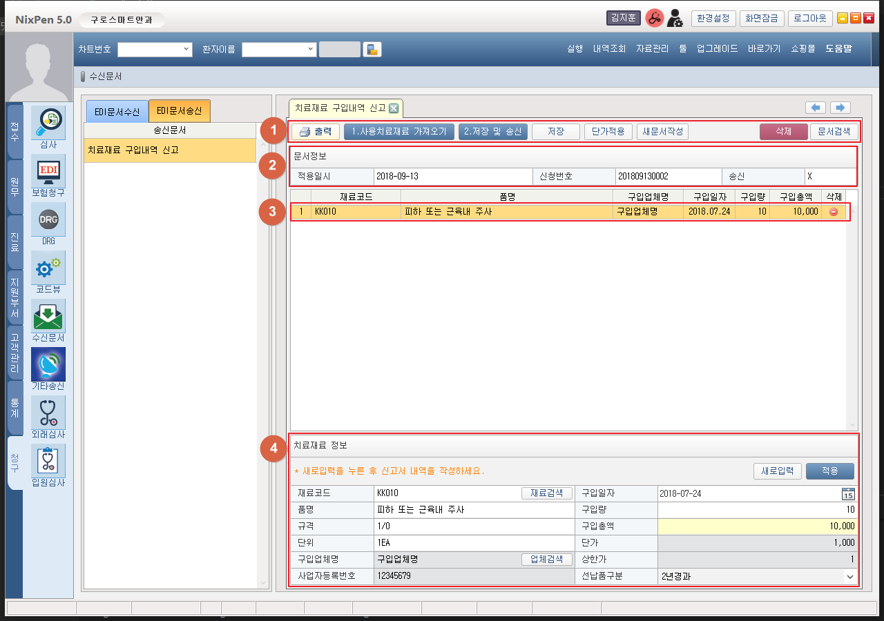 1. 치료재료구입내역통보