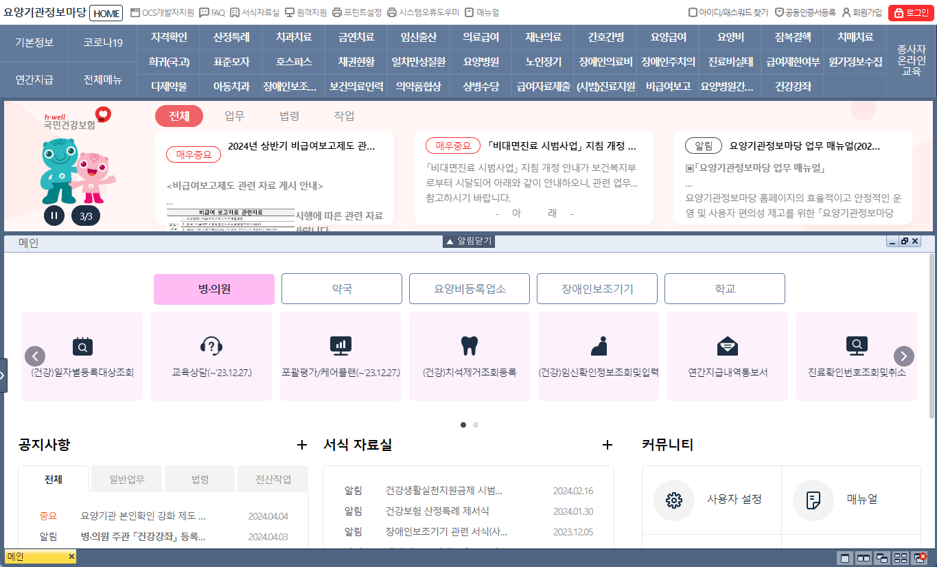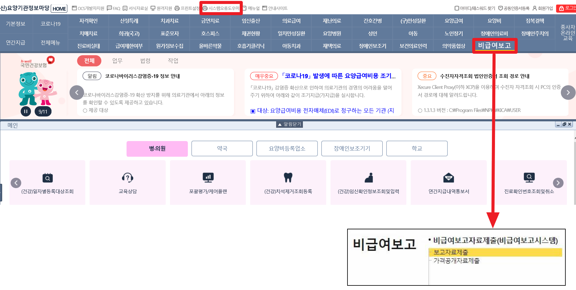 - 접속 불가 시 상단의 ‘시스템 오류 도우미’ 참조
