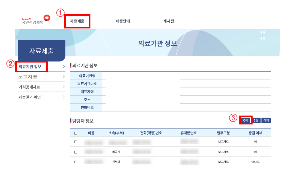 ① 자료 제출 메뉴 선택