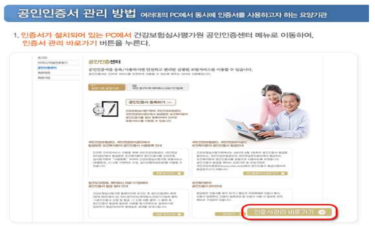 ❍ 기존에 발급받은 인증서가기간이 만료되기 전, 인증서를 발급받은 기관에서재발급 받은 후 반드시심평원 홈페이지 공인인증센터에 등록 을 해서 사용하셔야 합니다. ☞은행에서 받은 개인 공인인증서를 입력하시면 오류 가 나게 되므로 주의해서 입력해 주시기 바랍니다.