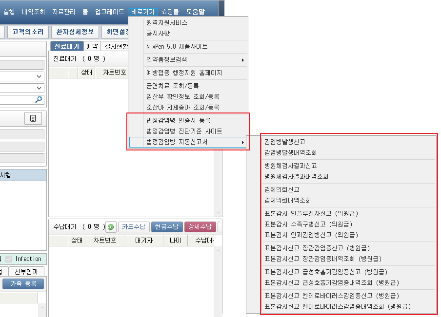 ✔ 법정감염병 기능 및 자동신고서 메뉴 추가