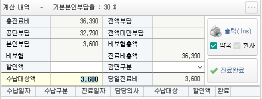 진찰료(재진) + AH240 대면진료 관리료 + 기타 원외처방 (코로나19 치료목적 약품) - 특정내역 MT043 / MX999 자동 기재 되오니 별도 입력 과정 없음 |