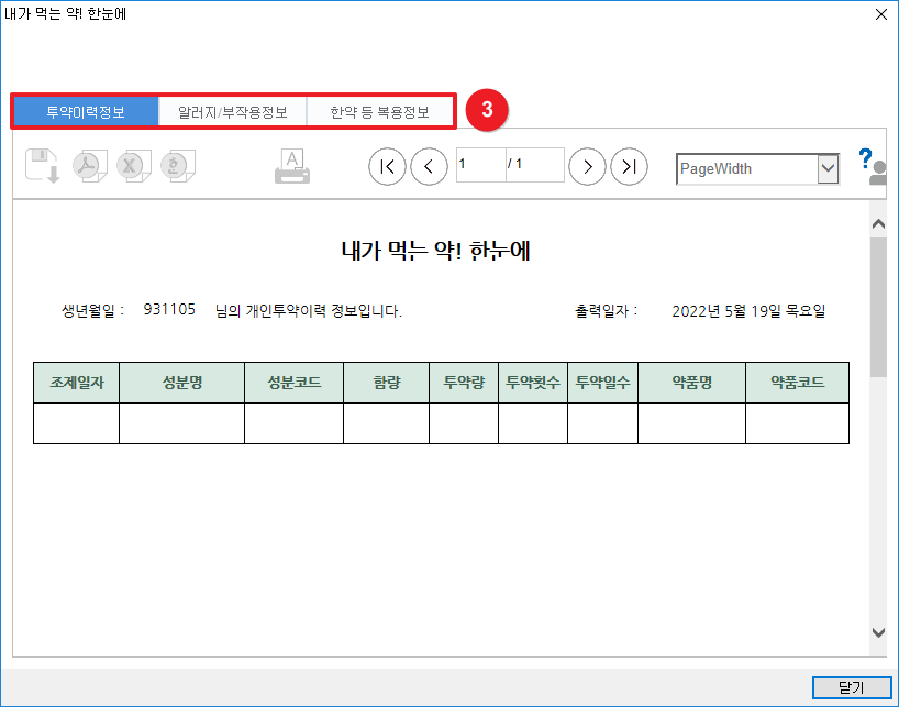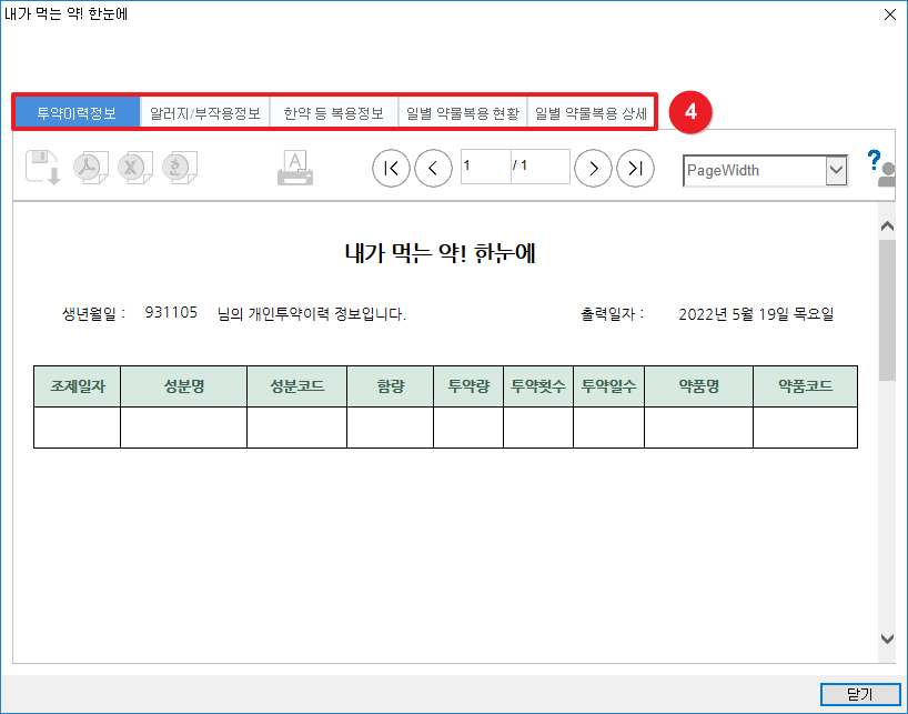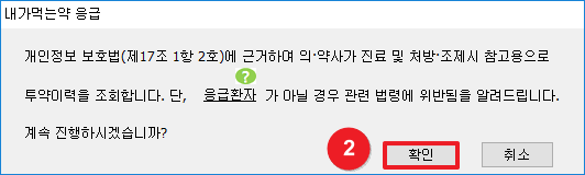⑥ 개인 투약 이력 조회 창 팝업 확인