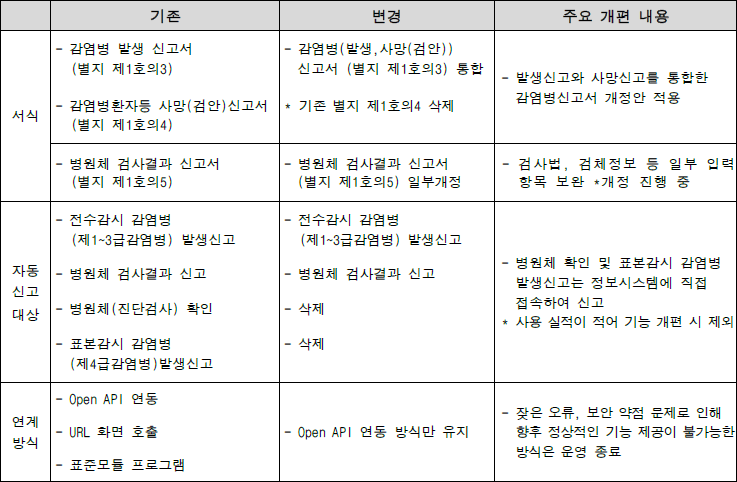 - 법정 감염병 자동 신고서 바로가기 메뉴 변경