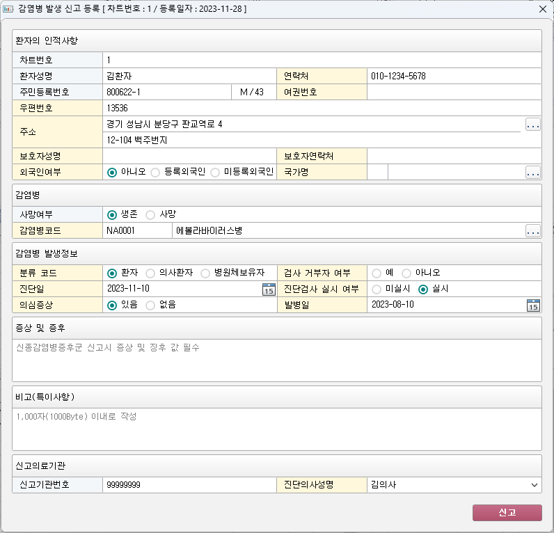 ① 감염병 발생 신고서 작성 기능 지원