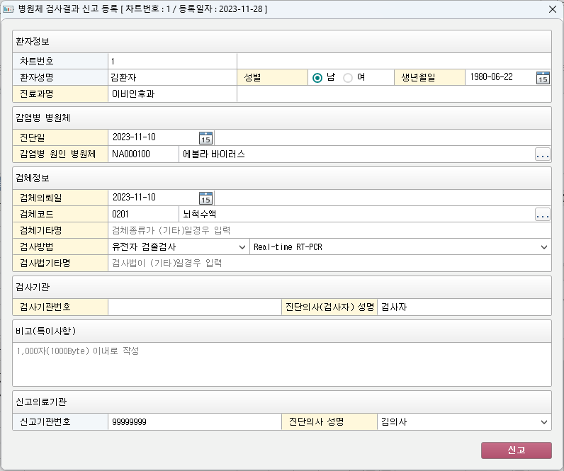 ② 감염병 병원체 검사 결과 신고서 작성 기능 지원