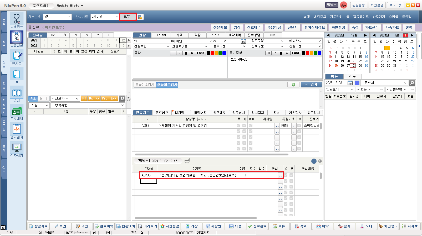 - 진료시 의원급 입원료 입력 시 자동 산정 됩니다.