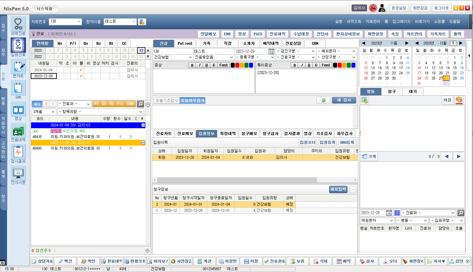 ▲ 2023년 입원 2024년 퇴원 시 청구 정보 작성 방법