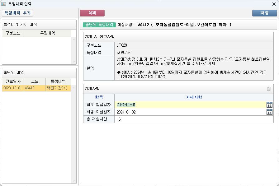- 특정내역(모자동실 입원료, B형간염표면항원 중화검사) 신설