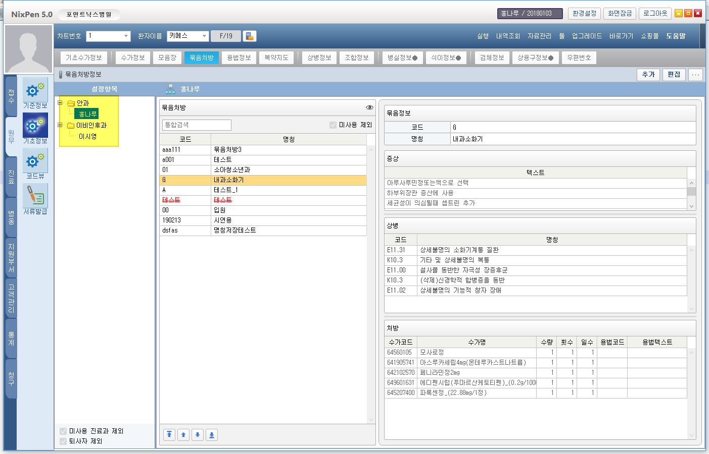 과별, 개인별 묶음처방 등록 기능 (개인 묶음코드 우선)