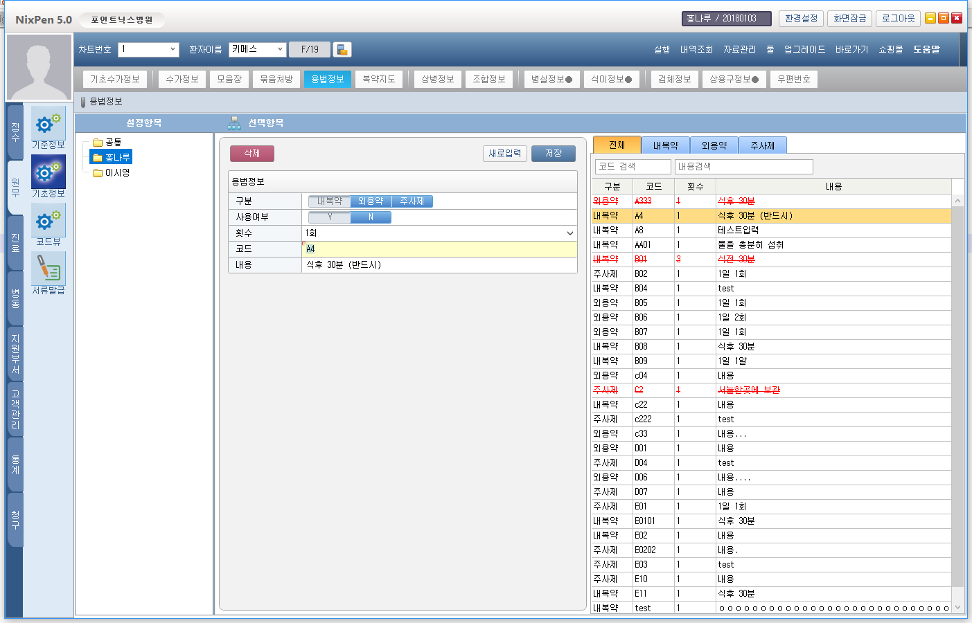 공통, 개인별 용법 등록 기능 (개인 용법코드 우선)