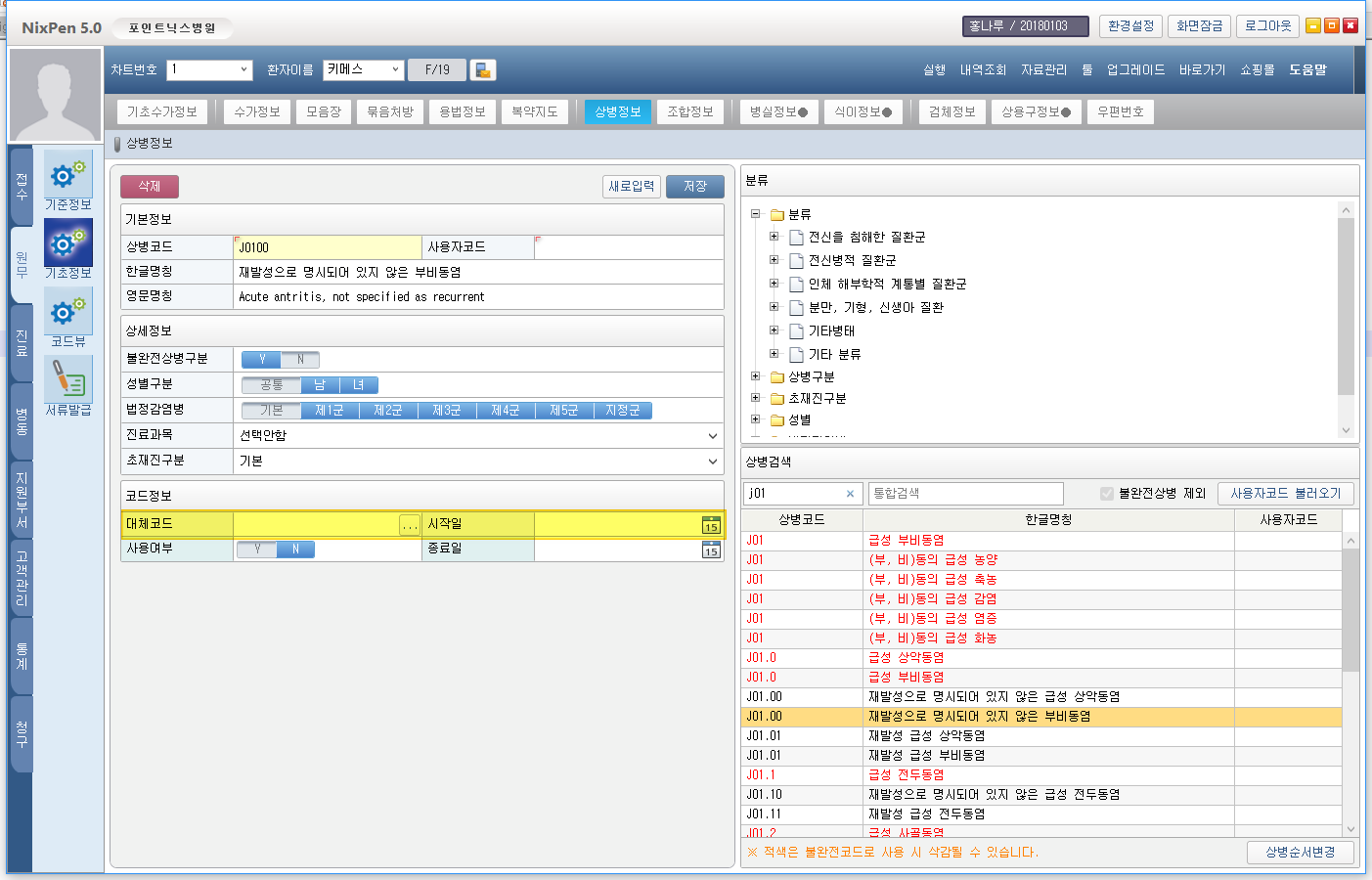 상병 대체코드 기능
