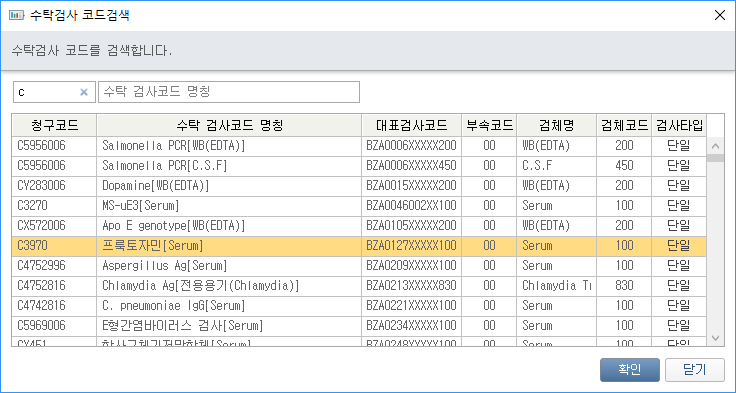수가코드별 수탁검사 설정 기능