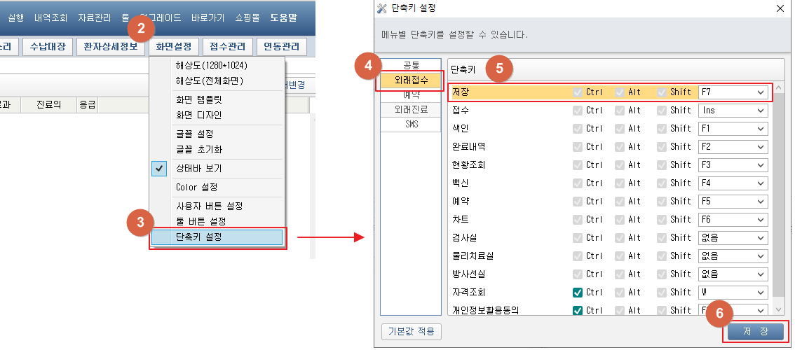 ⑤ 단축키 목록에서 저장을 찾아 편집합니다. 기본값은 F7입니다.