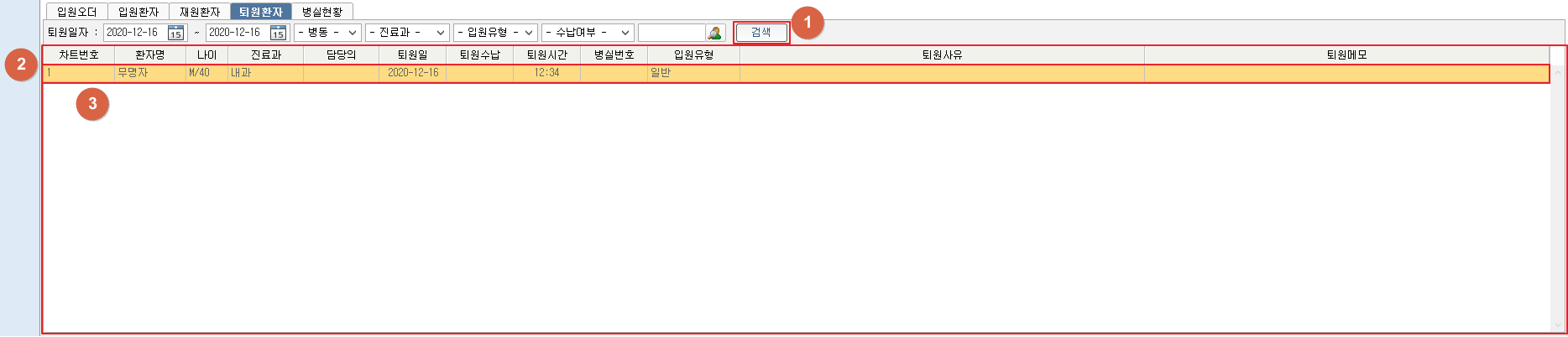 퇴원환자를 검색합니다.