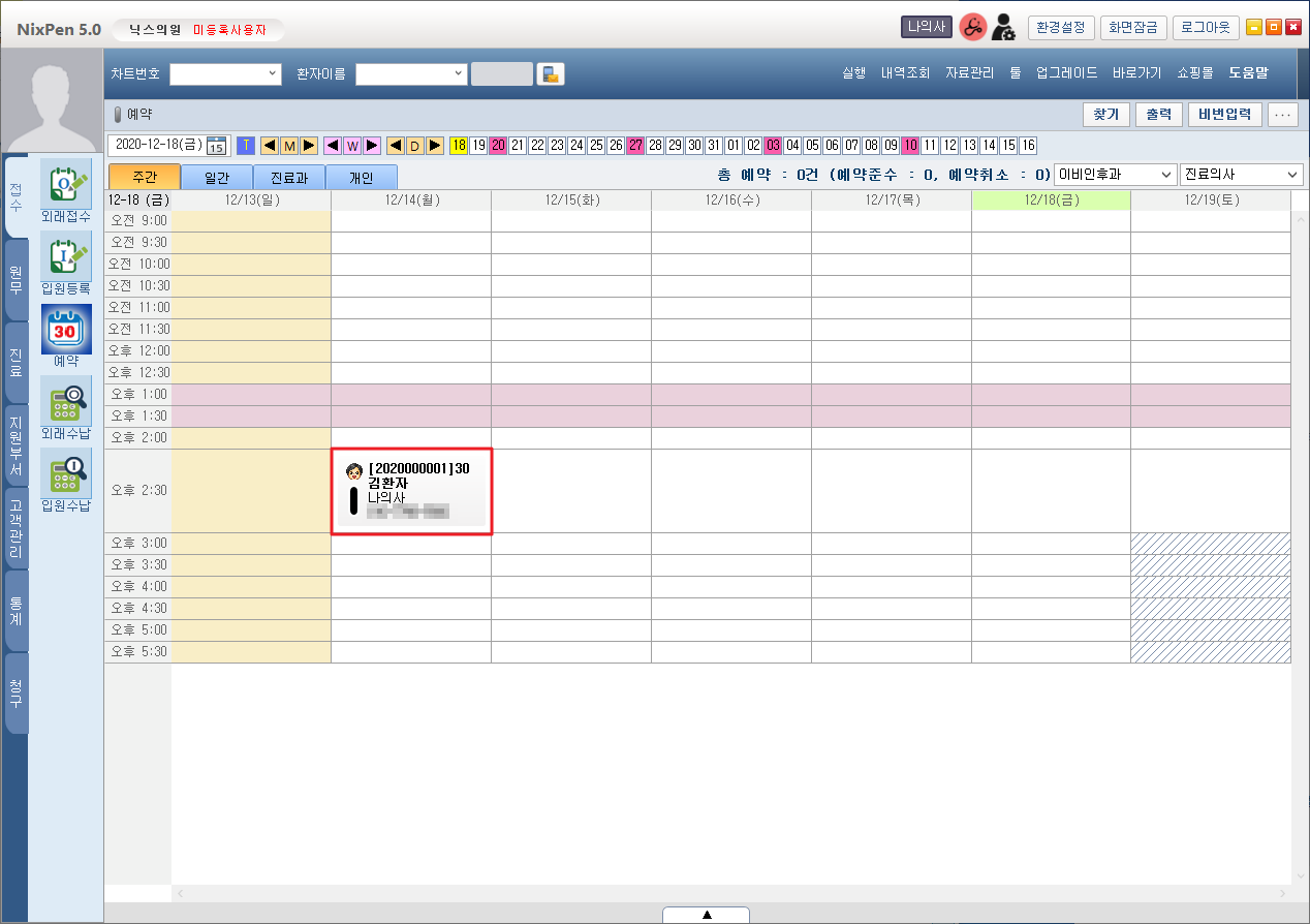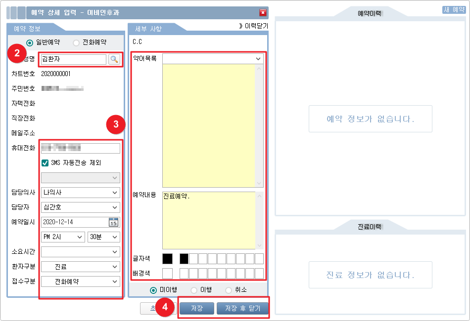 ② 예약 대상 환자를 검색합니다.