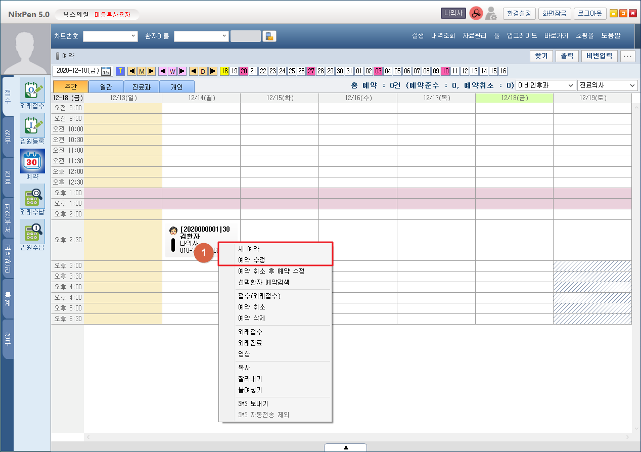 ③ 선택 환자의 예약 이력을 확인할 수 있습니다.