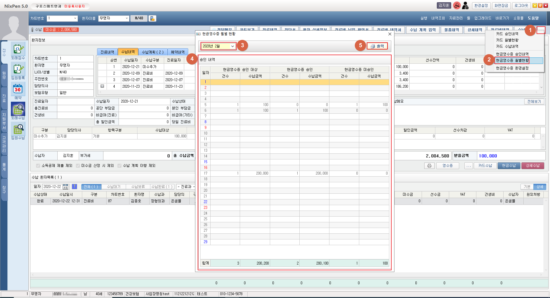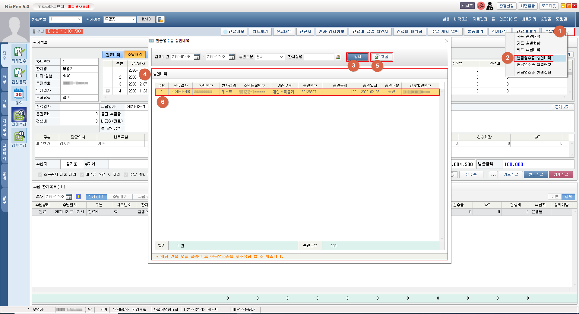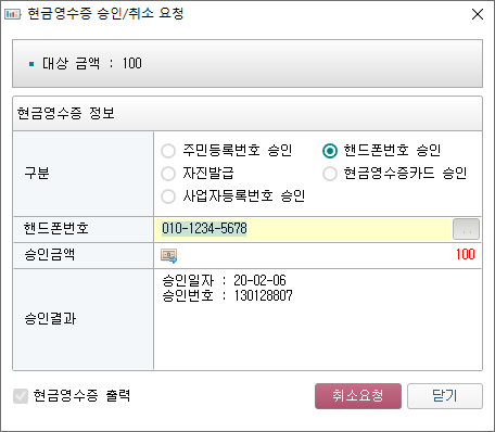⑥ 해당 건을 우클릭하여 현금영수증을 취소요청할 수 있습니다.