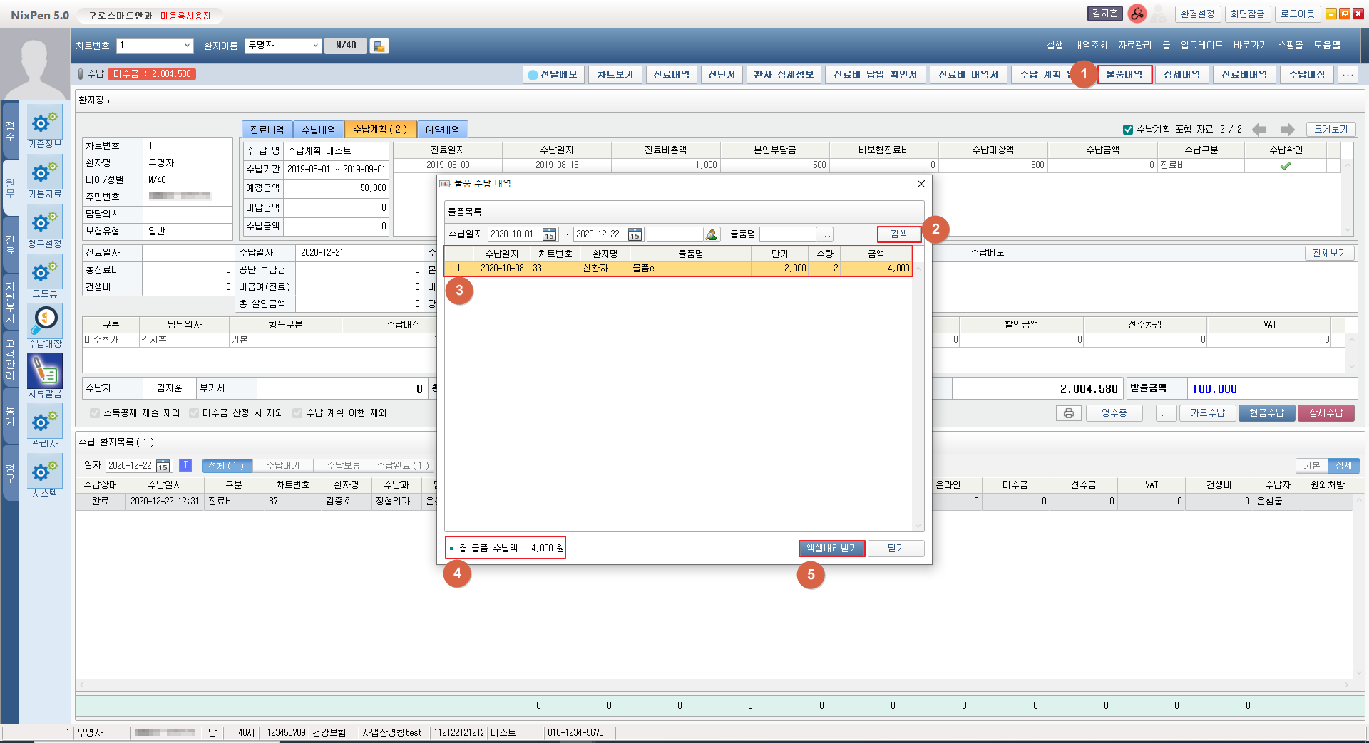 ④ 검색된 물품의 총 수납액을 확인합니다.