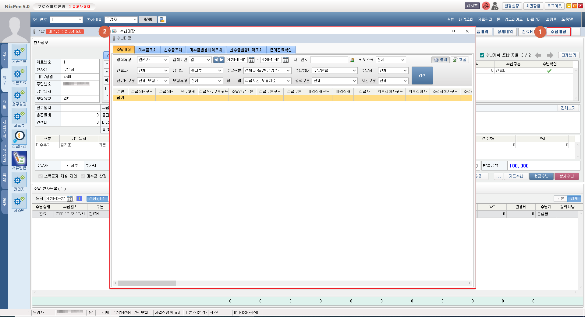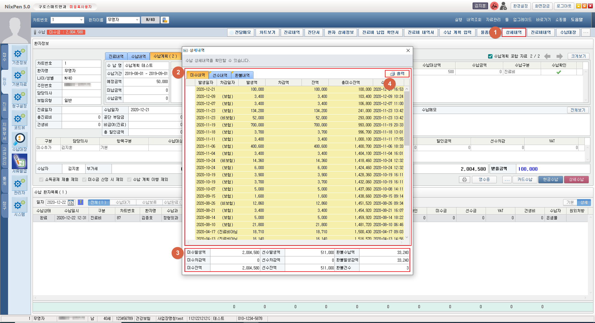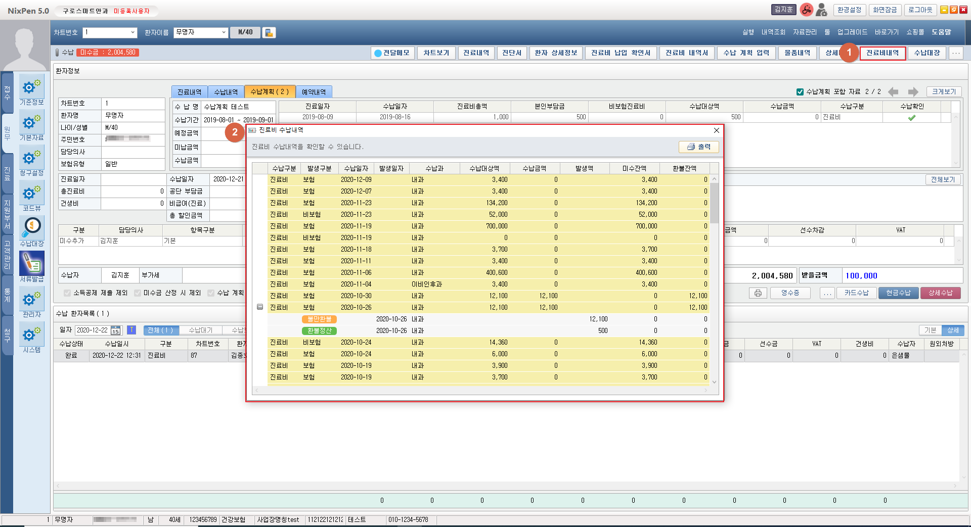 ② 미수내역/선수내역/환불내역을 확인합니다.