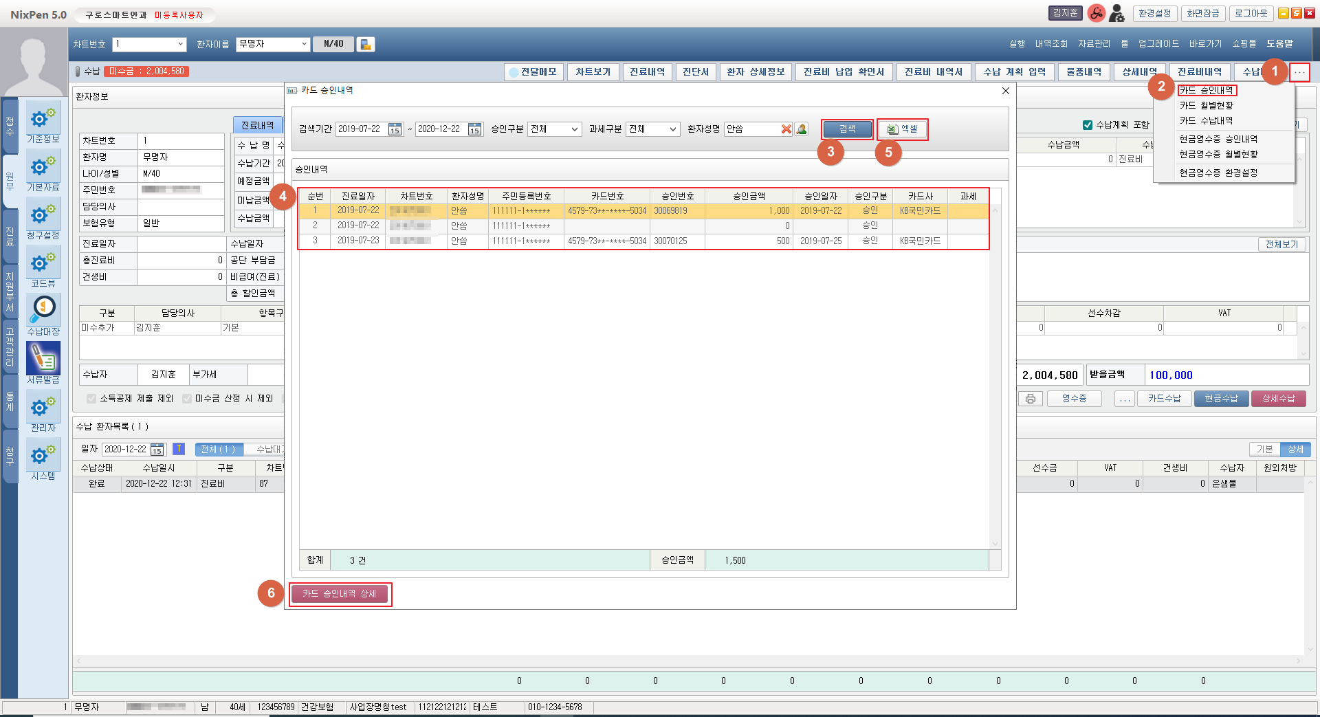 ⑥ [카드 승인내역 상세] 버튼을 클릭하여 ④카드승인내역에서