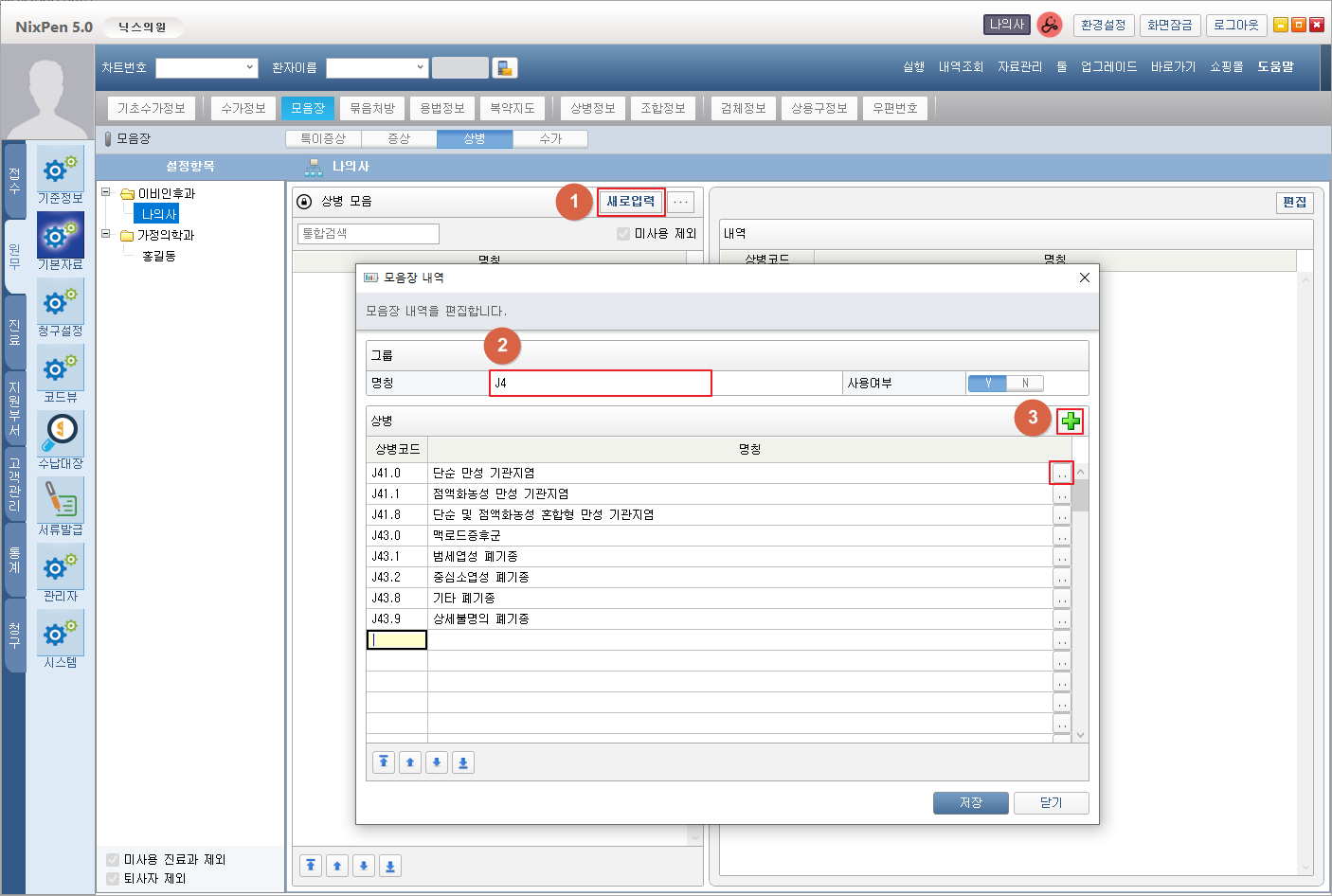 또는 상병그룹이나 상병내역 아이템을 더블클릭하여 편집창을 팝업 할 수 있습니다.
