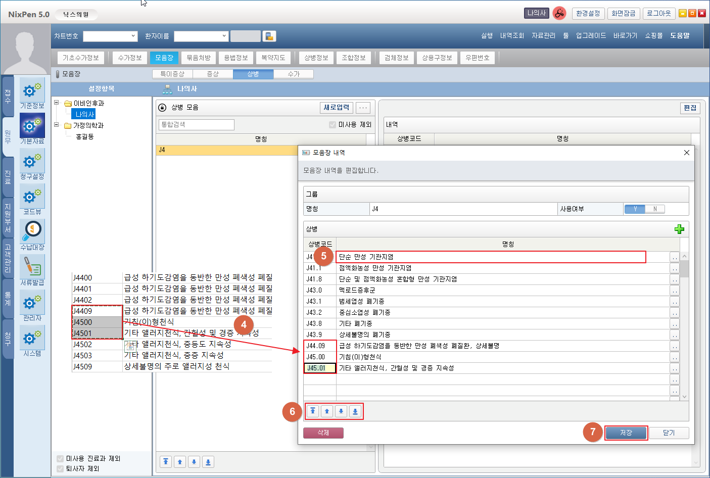 ⑤ 상병명칭을 편집합니다.