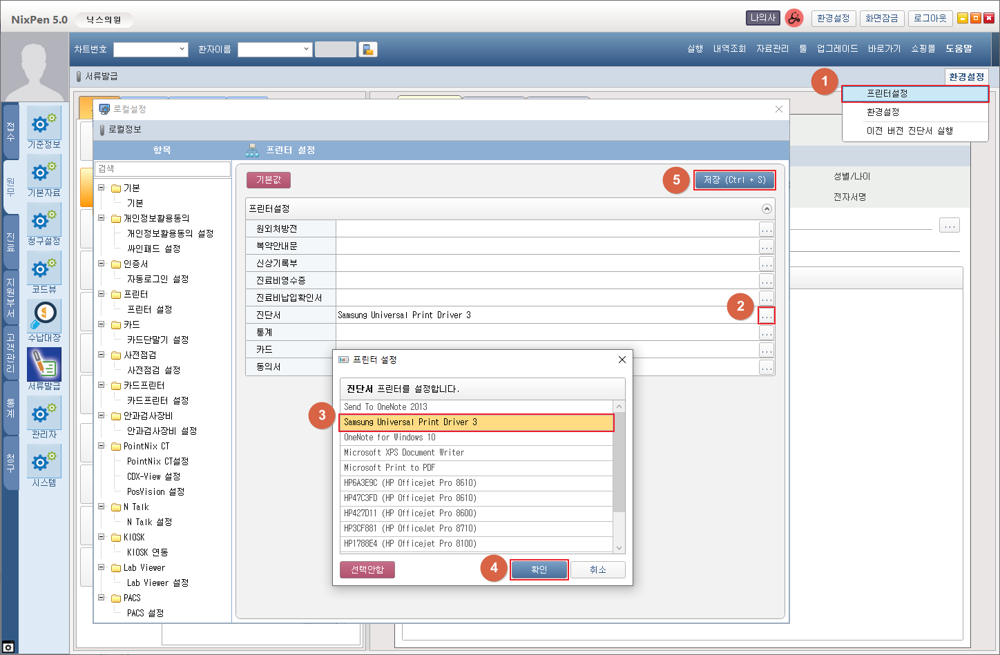 ③ 목록에서 진단서 출력에 사용할 프린터를 선택합니다.