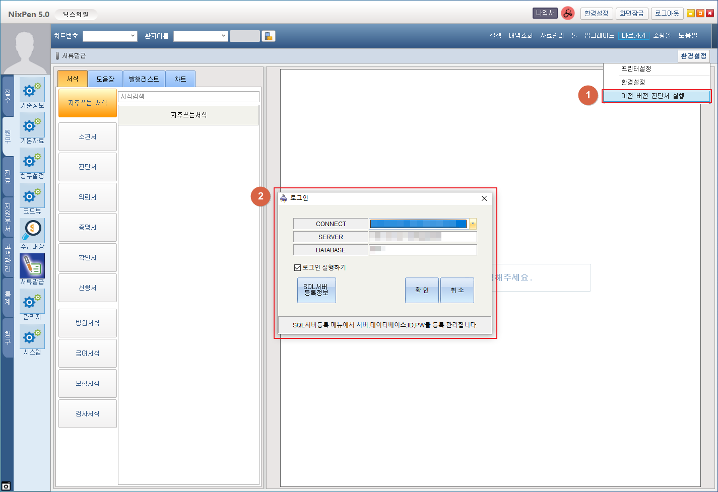 ① [이전 버전 진단서 실행] 메뉴를 선택합니다.