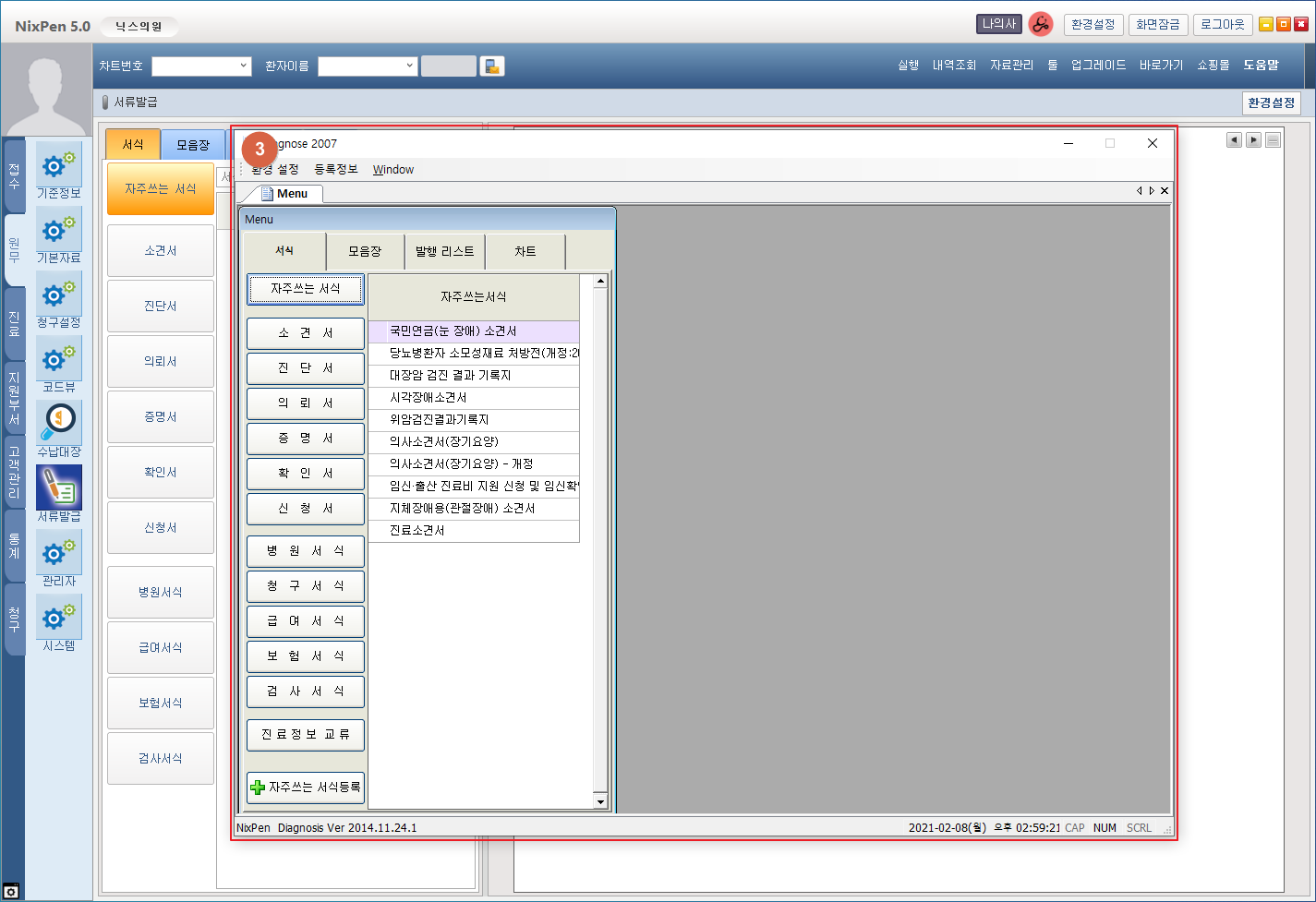② 진단서 항목의 [