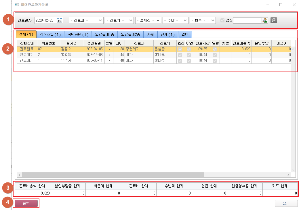 ② [진료완료] 버튼 클릭 시 진료상태를 진료완료로 변경합니다.