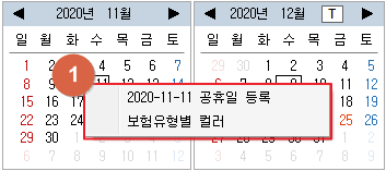 ① 달력의 날짜 우클릭 시 컨택스트 메뉴가 표시됩니다.