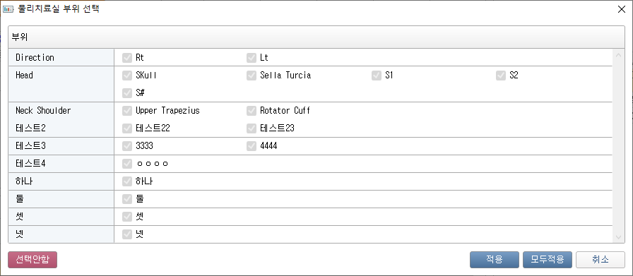 ⑦ [...] 버튼을 클릭하여 부위를 선택할 수 있습니다.