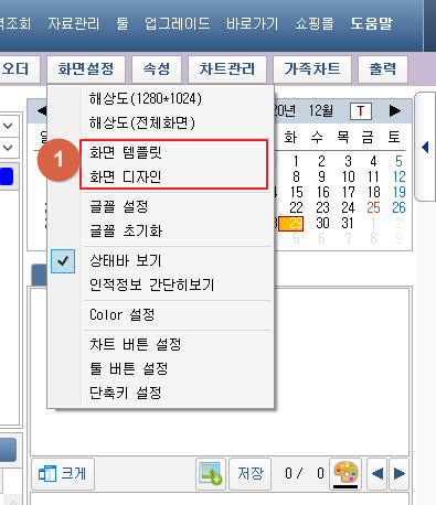 ① [화면 템플릿], [화면 디자인] 버튼을 클릭 시 화면 구성을 변경할 수 있습니다. 1. 화면설정