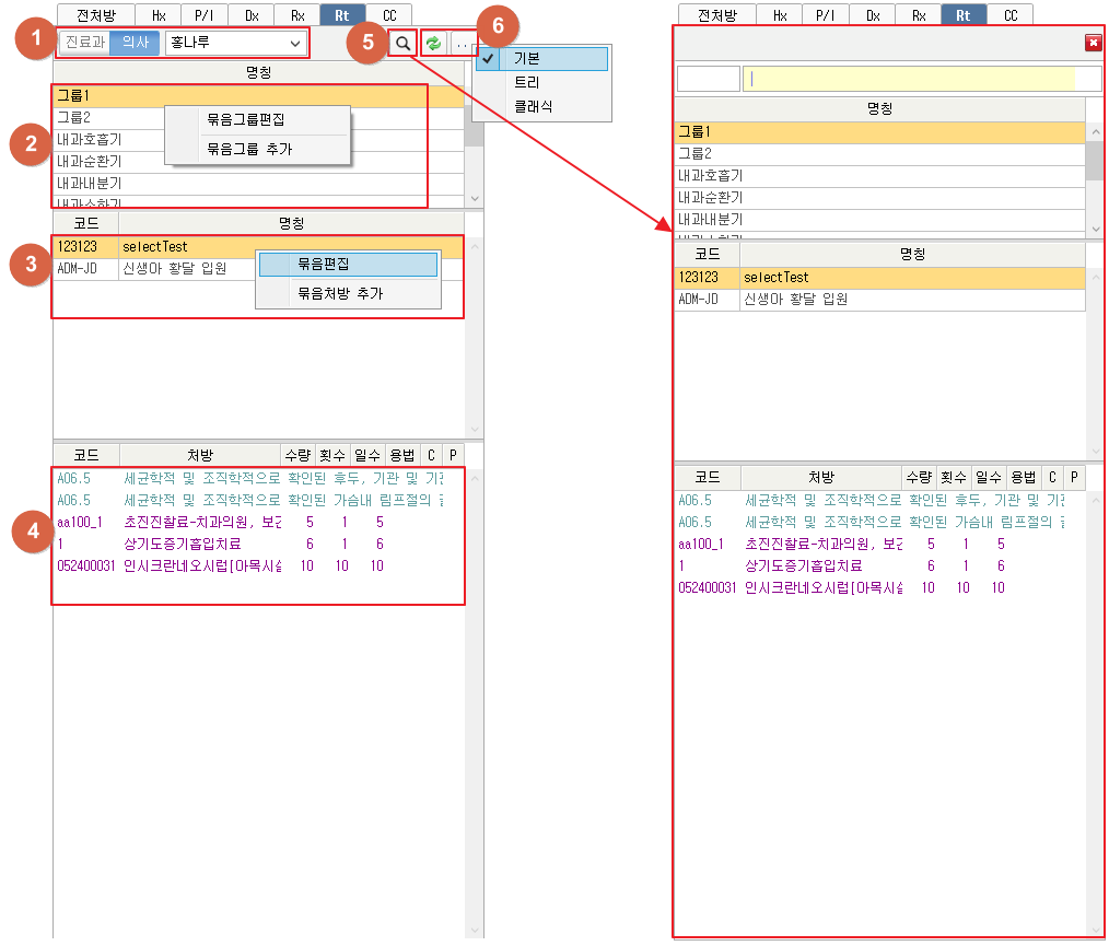 [클래식] 메뉴 클릭 시 클래식 형태로 묶음처방 표시 형식이 변경됩니다.