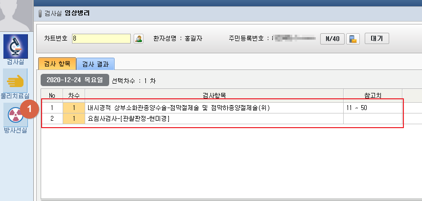 ① 검사 지시 목록을 확인합니다. 3. 실시부서 화면