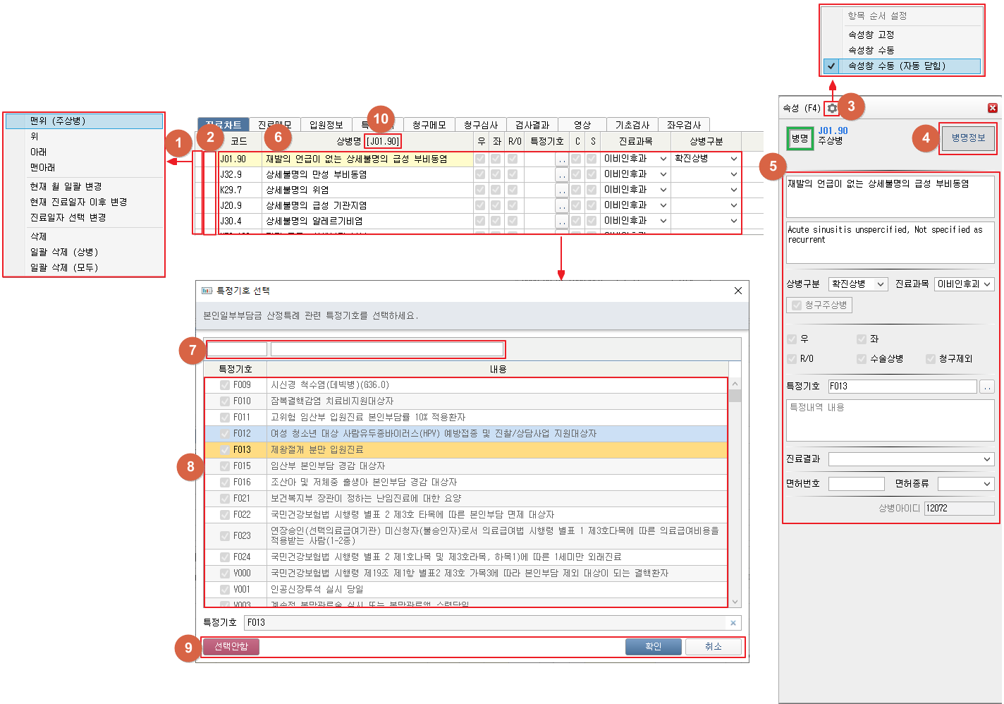 ⑩ 현재 주상병의 상병코드가 표시됩니다.