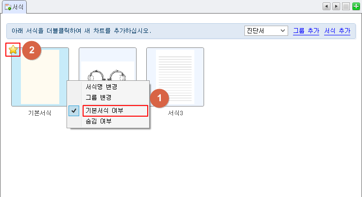 ① [기본서식 여부] 메뉴를 클릭 하여 기본서식 여부를 변경합니다.