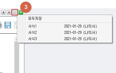 ] 버튼을 클릭 시 현재 열려있는 서식을 목록으로 볼 수 있습니다.