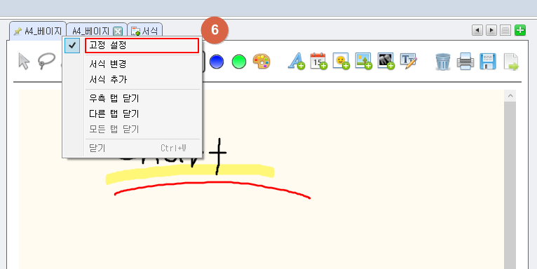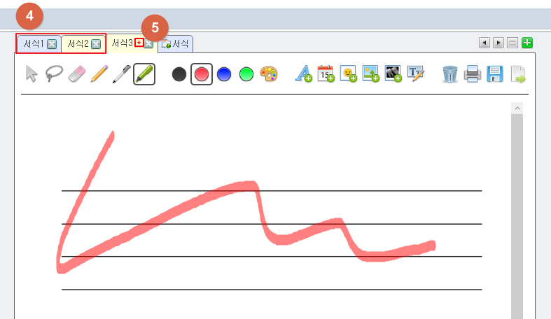 각 서식메뉴를 클릭하여 해당 서식탭으로 이동합니다.