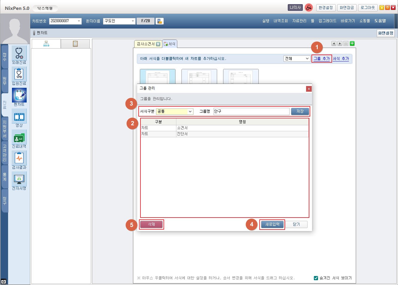 ③ 서식 구분과 그룹명을 입력 후 [저장] 버튼을 클릭하여 그룹정보를 저장합니다.