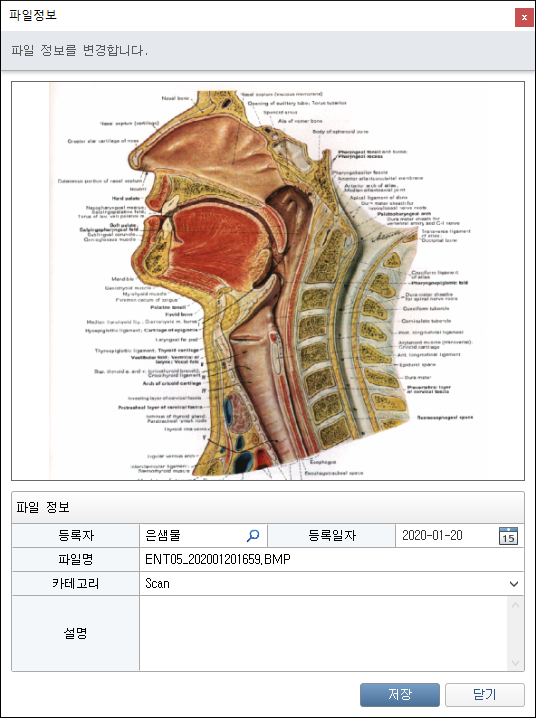 [영상 정보 수정] 메뉴 클릭 시 파일정보 창이 팝업됩니다.
