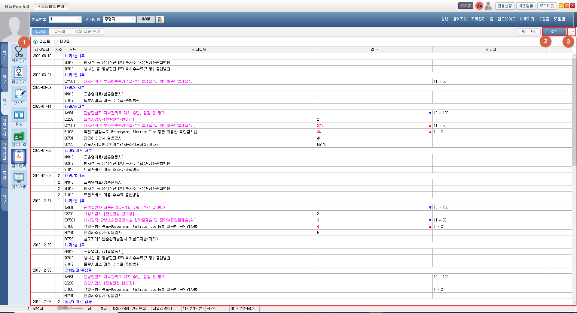 프로그램 활용 - 진료 > 검사결과