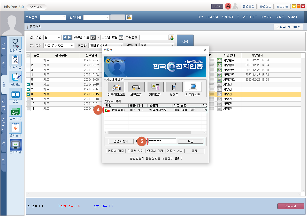 ⑤ 비밀번호를 입력 후 [확인] 버튼을 클릭합니다.