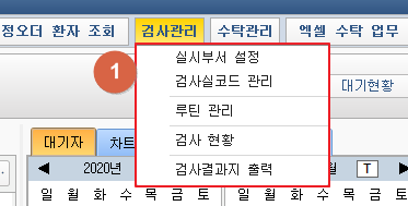 ① 실시부서 설정에서 선택한 검사실의 그룹 목록을 확인할 수 있습니다.