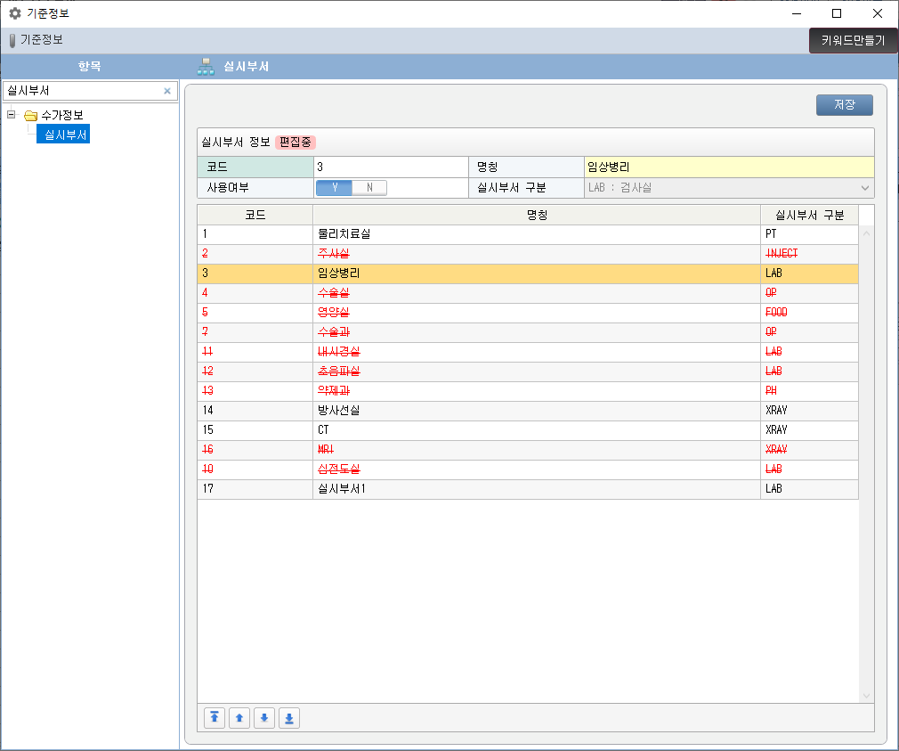실시부서 설정에서 선택한 검사실의 코드를 표시합니다.