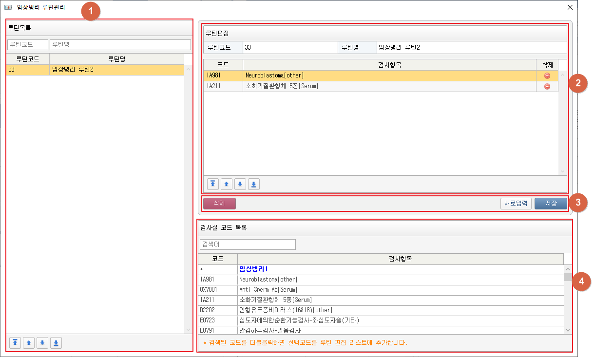 ② 루틴코드 및 루틴명칭을 입력할 수 있습니다.