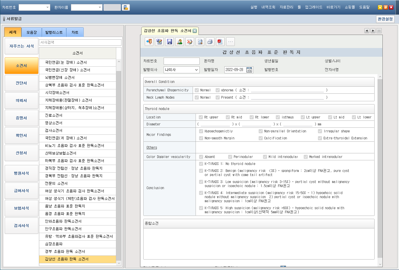 진단서 - 갑상선 초음파 판독 소견서 서식 추가