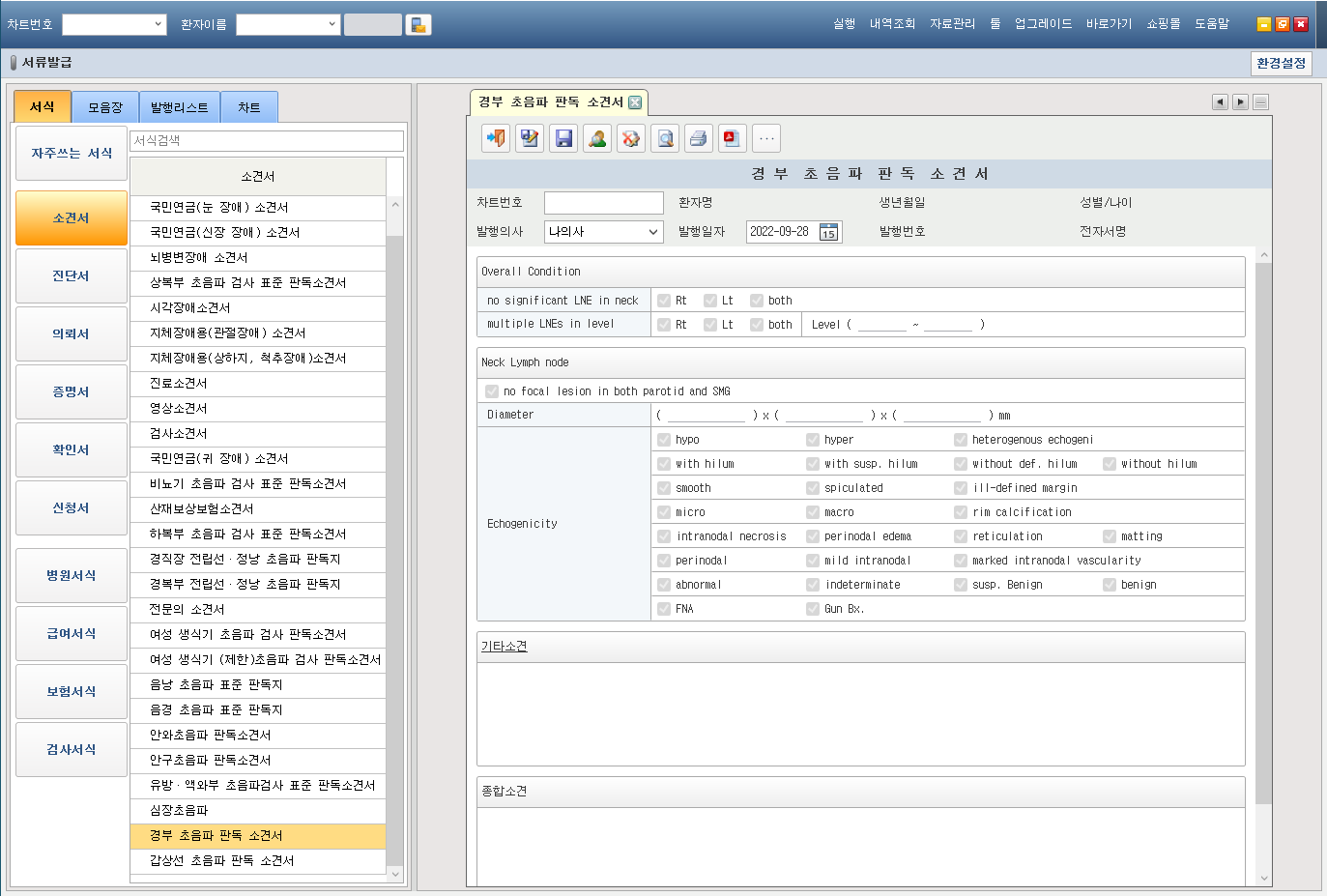 진단서 - 경부 초음파 판독 소견서 서식 추가