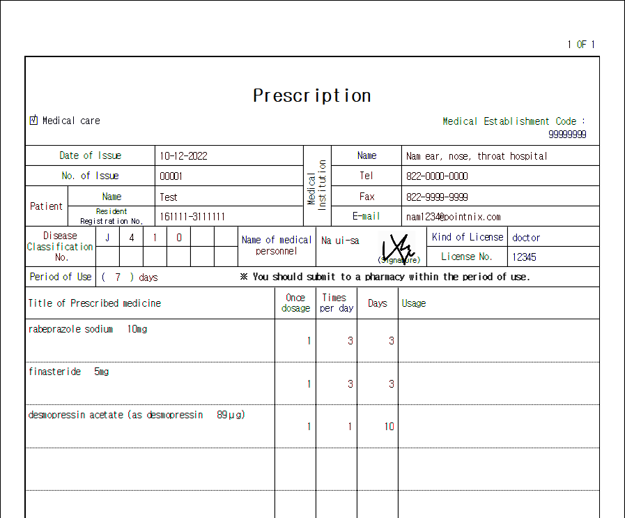 [ 영문처방전 출력물 화면 ]